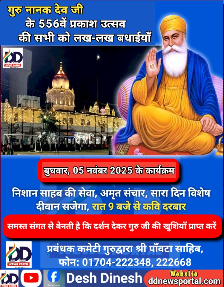 Paonta Sahib: अखंड पाठ के साथ गुरु नानक देव जी का 556वां प्रकटोत्सव शुरु, होंगे ये खास कार्यक्रम... ddnewsportal.com