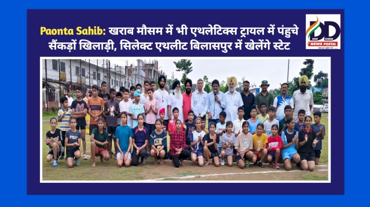 Paonta Sahib: खराब मौसम में भी एथलेटिक्स ट्रायल में पंहुचे सैंकड़ों खिलाड़ी, सिलेक्ट एथलीट बिलासपुर में खेलेंगे स्टेट ddnewsportal.com