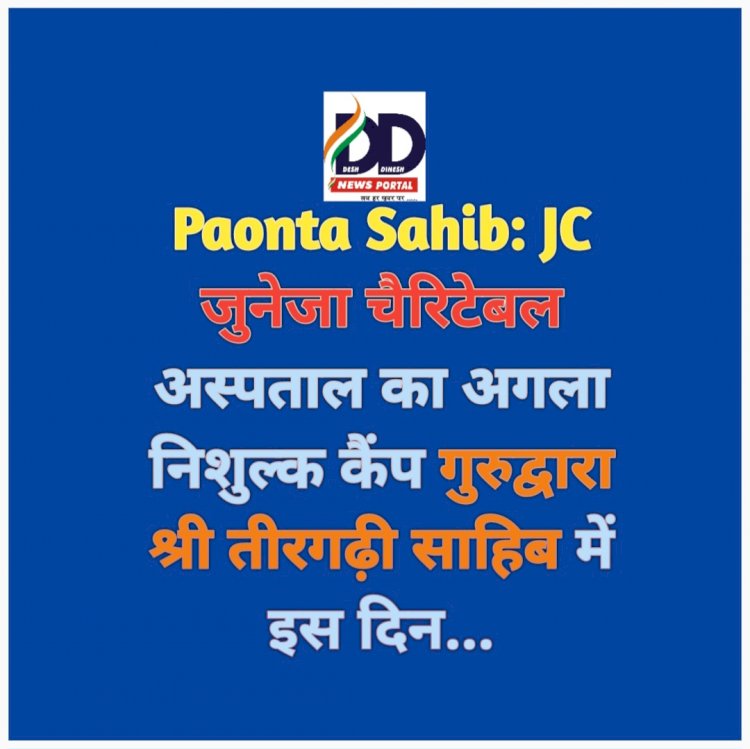 Paonta Sahib: JC जुनेजा चैरिटेबल अस्पताल का अगला निशुल्क कैंप गुरुद्वारा श्री तीरगढ़ी साहिब में इस दिन... ddnewsportal.com
