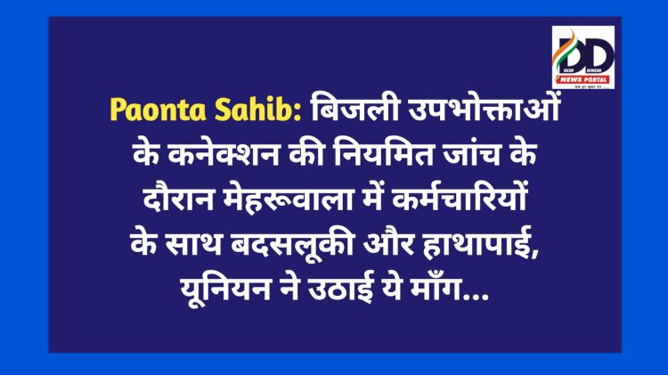 Paonta Sahib: बिजली उपभोक्ताओं के कनेक्शन की नियमित जांच के दौरान मेहरूवाला में कर्मचारियों के साथ बदसलूकी और हाथापाई, यूनियन ने उठाई ये माँग... ddnewsportal.com