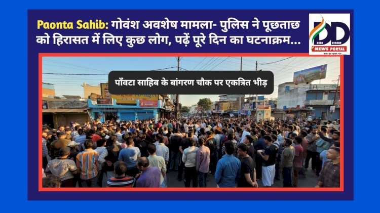 Paonta Sahib: गोवंश अवशेष मामला- पुलिस ने पूछताछ को हिरासत में लिए कुछ लोग, पढ़ें पूरे दिन का घटनाक्रम... ddnewsportal.com